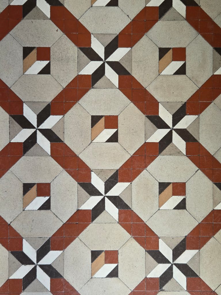 Almost every room of VALOLA feature mosaic tiles made out of thousands of small stoneware tiles arranged in geometric designs. These geometric tiles, are known as Nolla mosaic. Miguel Nolla, a Catalan entrepreneur began manufacturing them in Valencia in 1860.